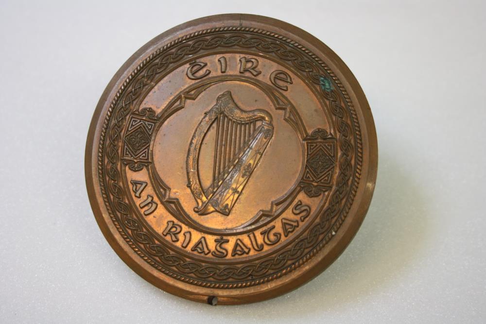 Seal, Irish Free State. Copper counterpart or replica. Harp enclosed by legend 'Éire / An Riaghaltas'. The Government of Ireland. Design in relief.;