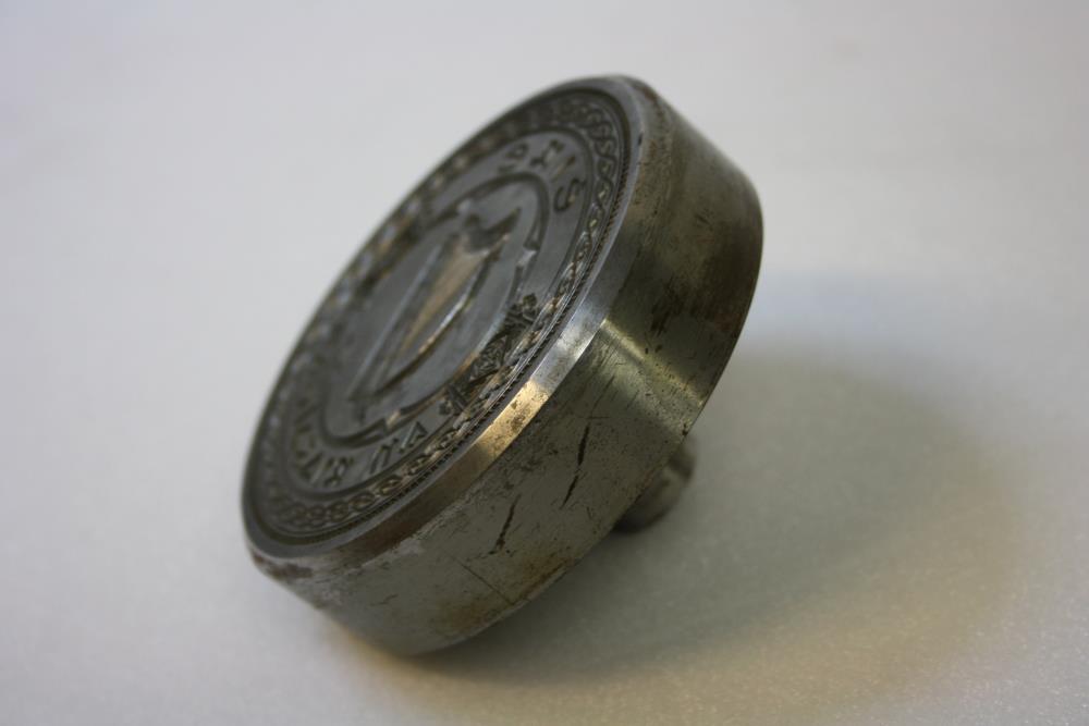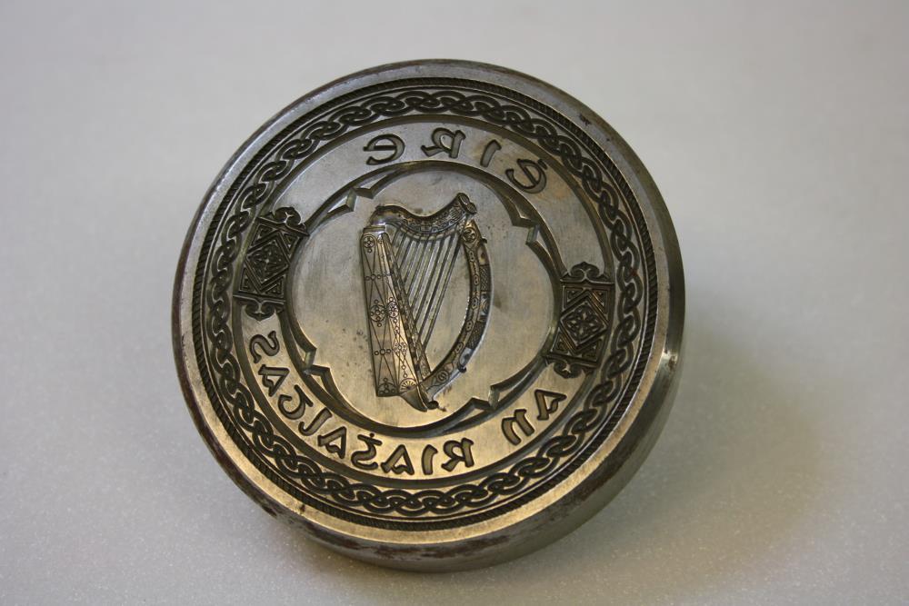 Seal, Irish Free State. Steel matrix with stem. Harp enclosed by legend 'Éire / An Riaghaltas'. The Government of Ireland. Design in intaglio.;