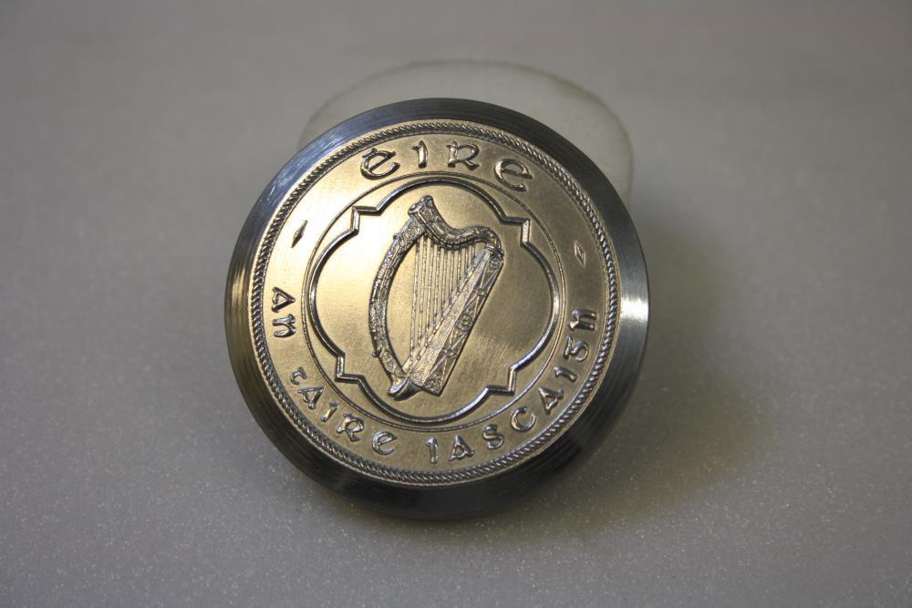 Seal, Irish Free State. Steel matrix, or replica. Harp enclosed by legend 'Éire / An tAire Iascaigh'. The Minister for Fisheries. Design in relief. In box.;