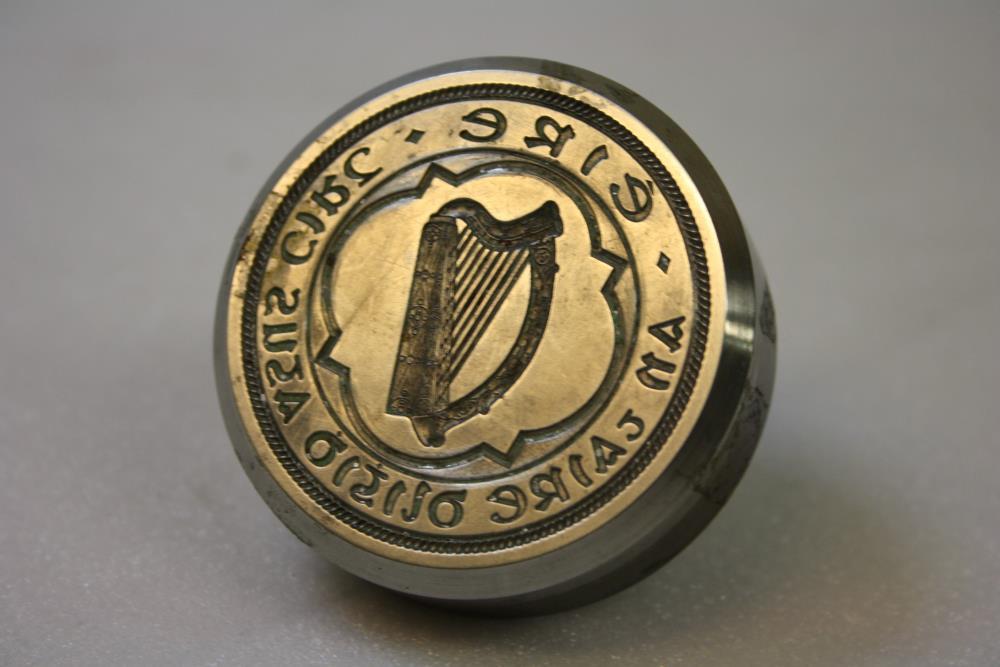 Seal, Irish Free State. Seal matrix. Harp enclosed by legend 'Éire / An tAire Dlidhigh agus Cirt'. The Minister for Justice. Design in intaglio.;