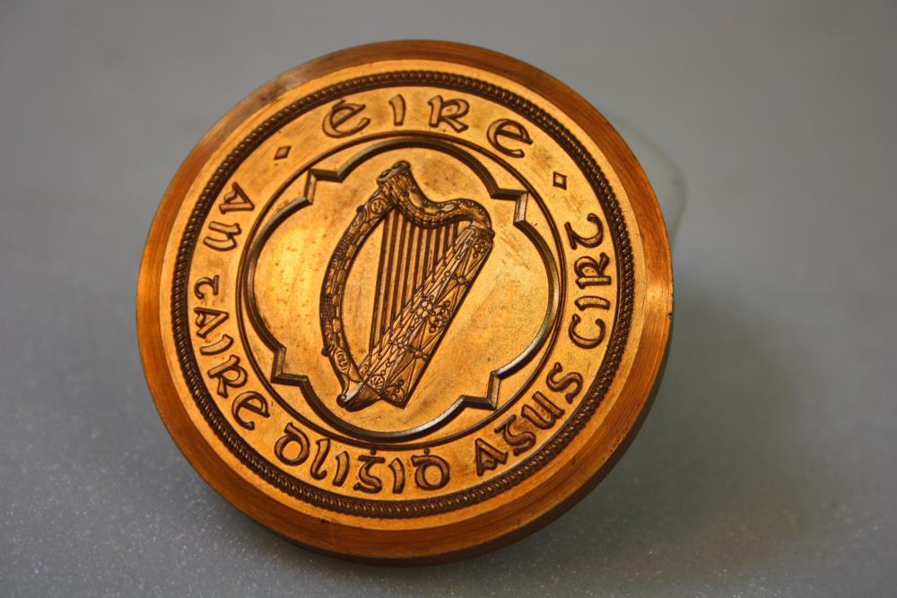 Seal, Irish Free State. Seal replica. Harp enclosed by legend 'Éire / An tAire Dlighidh agus Cirt'. The Minister for Law and Justice. Design in relief. In box.;