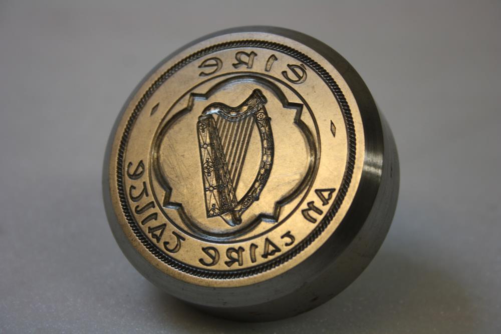 Matrix; Seal of the Minister for Lands, Saorstát Eireann. Ornamental Irish harp within a shaped four point circular shield, around which is inscribed "An tAire Tailte Minister for Lands'. Design in intaglio.;
