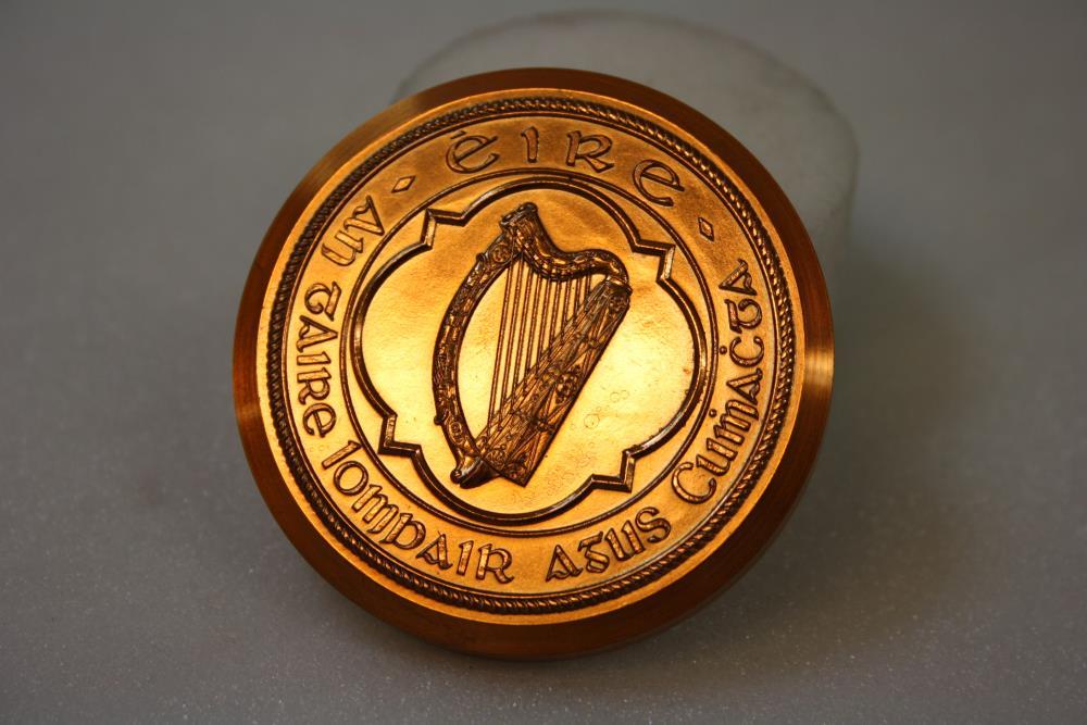 Seal, Irish Free State. Replica. Used from July 1959 to September 1977. Harp enclosed by legend 'Éire / An tAire Iompair agus Cumhachta'. The Minister for Transport and Power. Design in relief.;