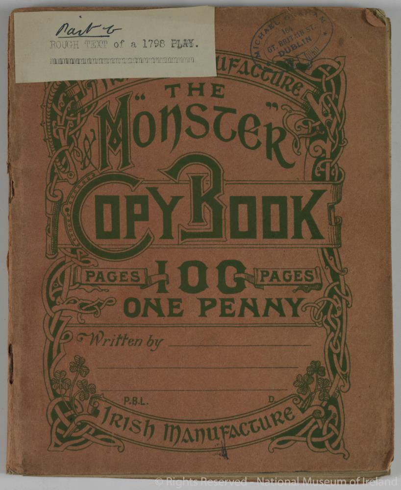 Countess Markievicz's notebook. Rough draft of a 1798 play. Handwritten.;
