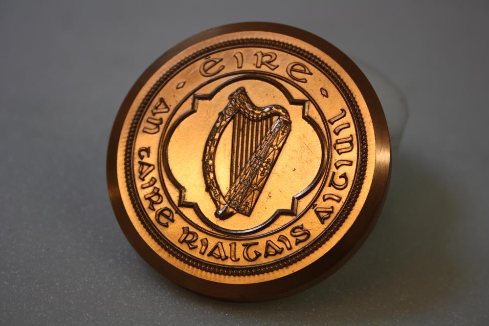 Seal, Irish Free State. Seal replica. Harp enclosed by legend 'Éire / An tAire Rialtais Aitiuil'. The Minister for Local Government. Design in relief. In box.;