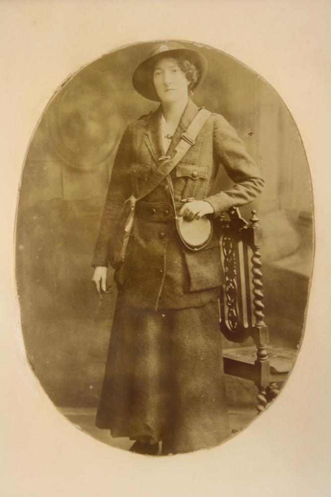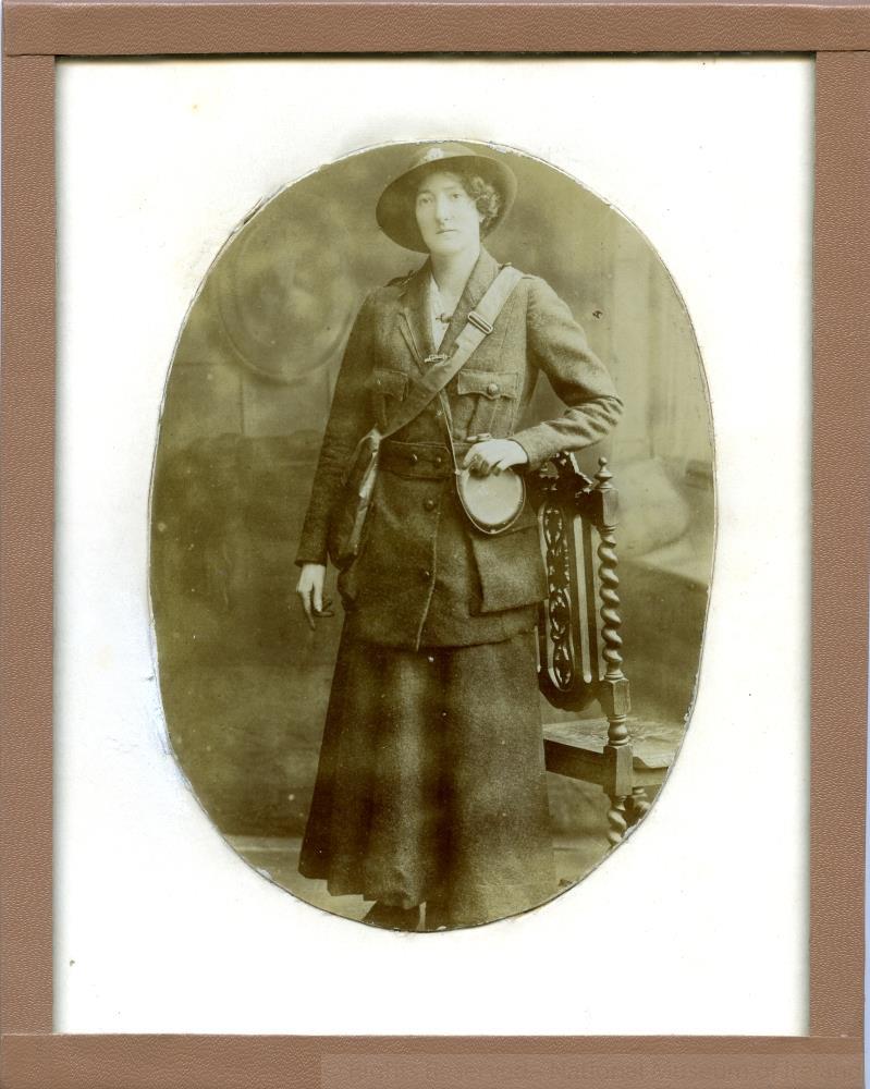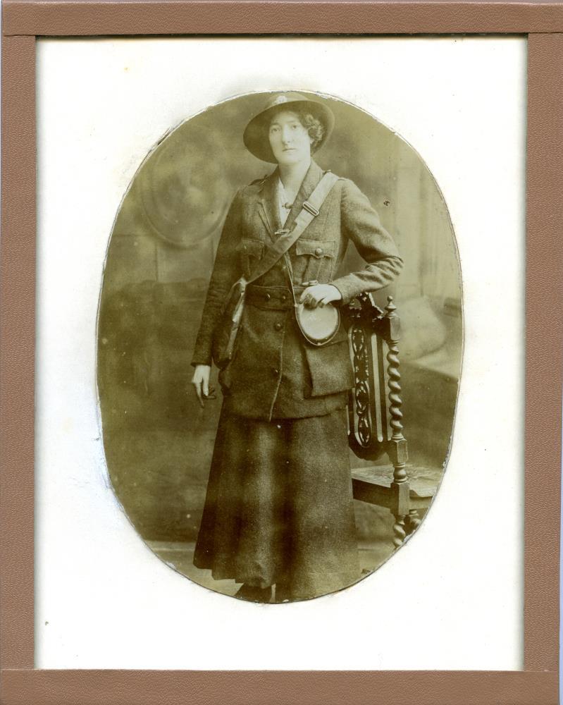 Framed photograph of a Miss Geraghty, Cumann na mBan member in uniform.