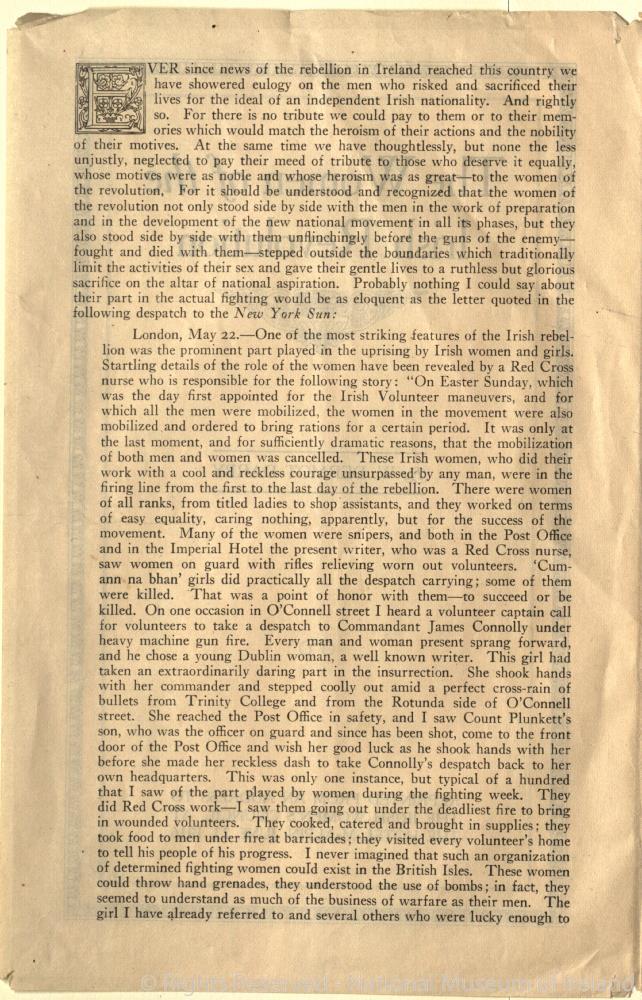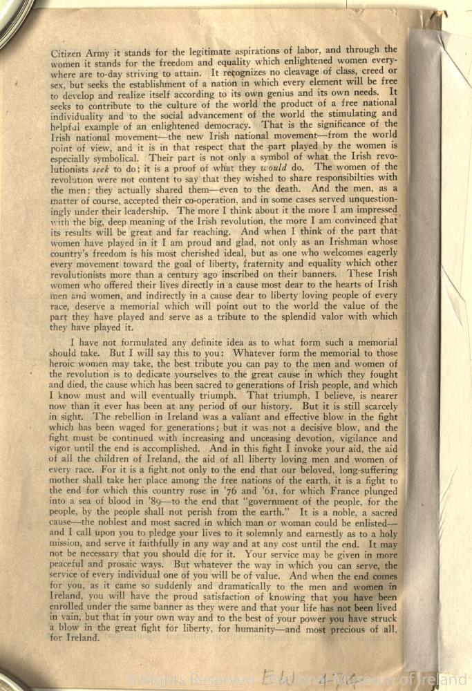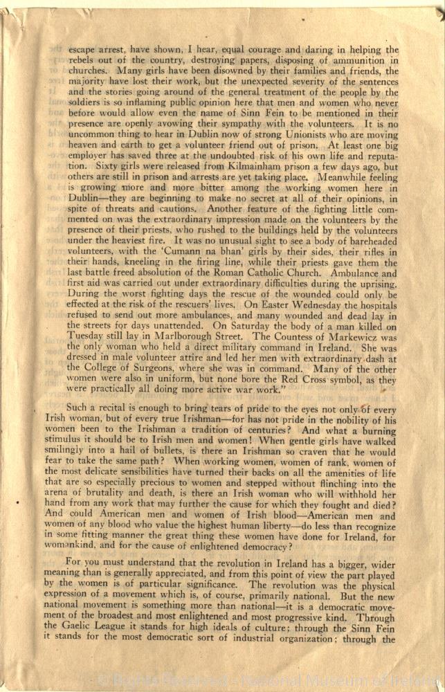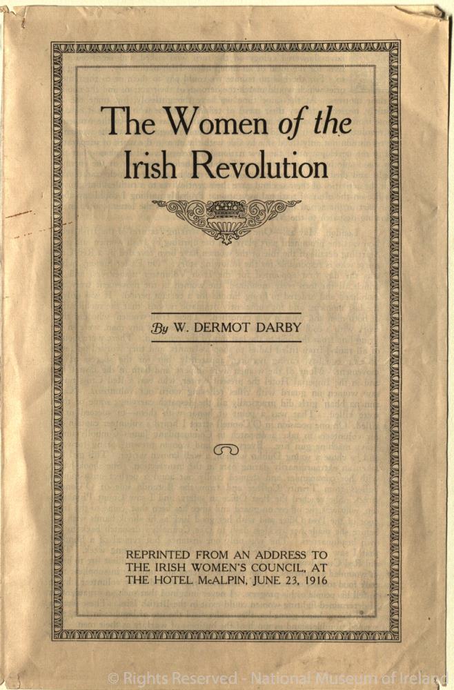Pamphlet "The Women of the Irish Revolution" by W. Dermot Darby. Reprinted from an Address to the Irish Women's Council at the Hotel McAlpin, June 23 1916.;