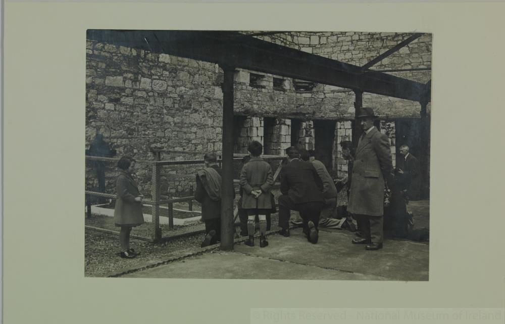 Photograph taken at the grave of Thomas Kent. Members of the public paying homage to the memory of Thomas Kent, whose grave is situated in Collins Barracks, Cork. Photograph published in the Cork Examiner, Monday 22 April 1935.;