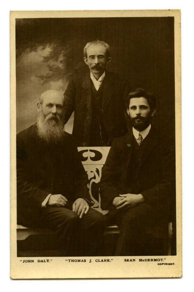 John Daly, Thomas Clarke, and Sean MacDiarmada. Postcard photograph of.;