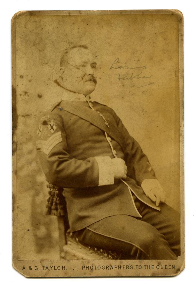Photograph of William Joseph Mellows, father of Liam Mellows. Seated looking towards the right, in military uniform, British Army. Photograph by A. & G. Taylor, Photographers to the Queen.;