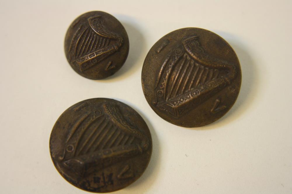 Three Irish Volunteer buttons c. 1914. Two jacket, one cuff or collar. All made by Comyns and Son, Dublin.;