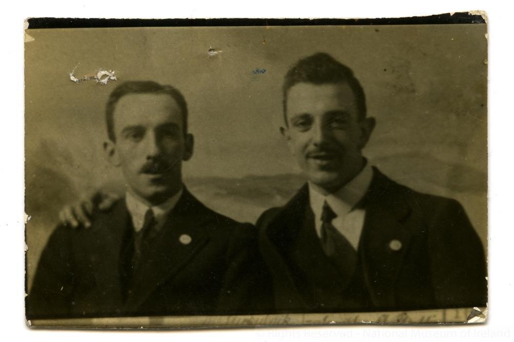 Snapshot photograph of Ned Daly and James O'Sullivan. O'Sullivan married Laura, sister of Ned Daly, in 1918. He himself had been imprisoned in Lewes Gaol in 1917.;