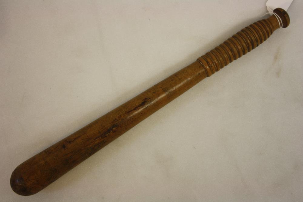 Royal Irish Constabulary baton or truncheon. Overall length 16 ins. 4 ins. ribbed at end for handgrip widening to a smooth rounded top.;