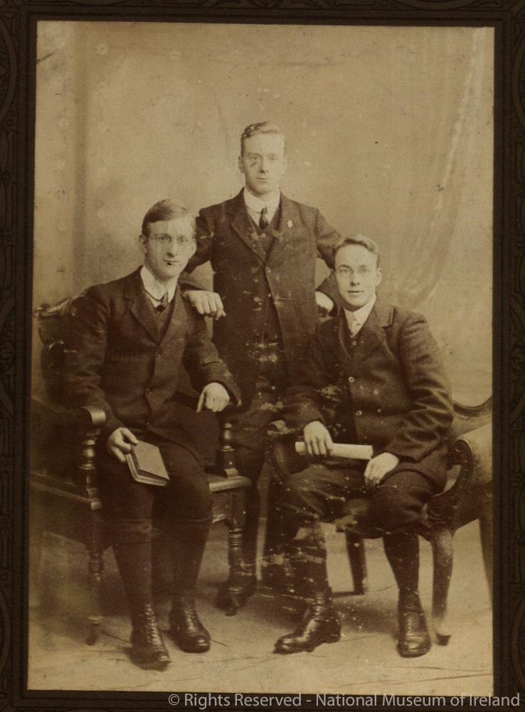 Studio photograph of the brothers Barney, Liam and Fred Mellows. Photograph pre-dates 1914, when Frederick Mellows died of tubercolusis.;