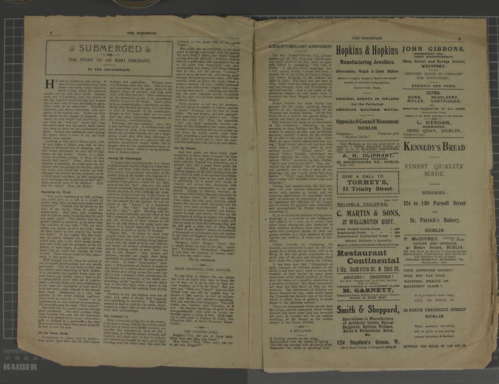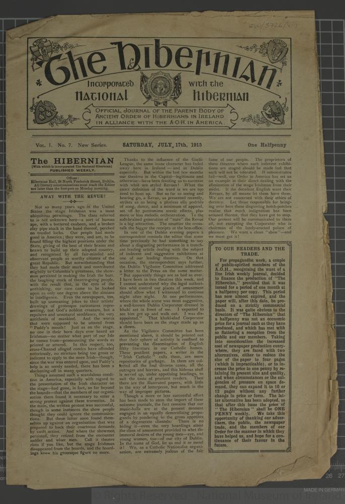 File of the Hibernian 1915/16 comprising issues of 26 June, 3, 17, 31 July; 7, 21, 28 August; 9, 16 Oct.; 27 Nov.; 11 Dec. 1915; 8, 15 Jan.; 5 Feb. 1916.;