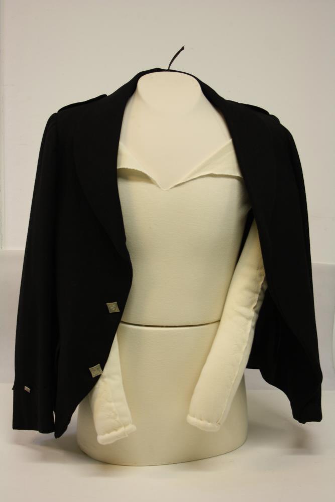 Black jacket, with three Clann na nGaedheal buttons down the front, and one on each shoulder strap. With a saffron vest. Part of the costume worn by William Pearse.;