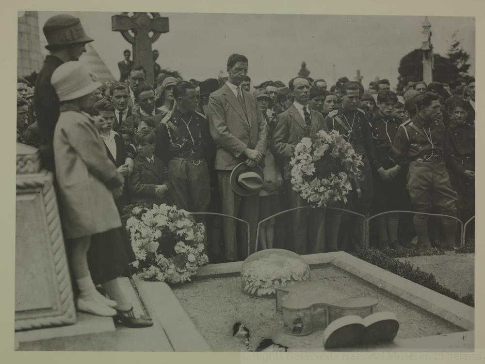 (Cashman 229) Countess Markievicz. Photograph of Eamon de Valera, Seamus Robinson and Frank Aiken at the grave of Countess Markievicz, Glasnevin, 1927.;