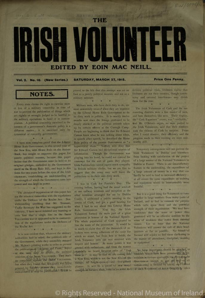 File of the Irish Volunteer 1914/15 comprising Vol. 2 Nos. 16, 19 (2 copies), 24 (18 copies), 46 + supplement to issue of 26 December 1914.;