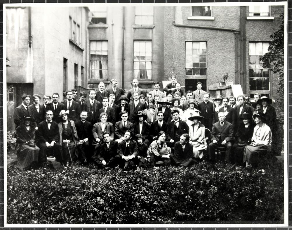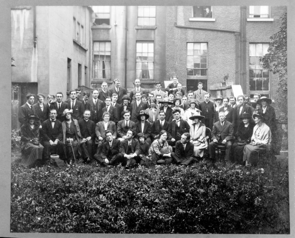 Sinn Fein Group c. 1920, including Michael Collins, Eamon de Valera, Gearoid O'Sullivan, Harry Boland, Richard Mulcahy, Rory O'Connor, Countess Markievicz, Nora Connolly.;