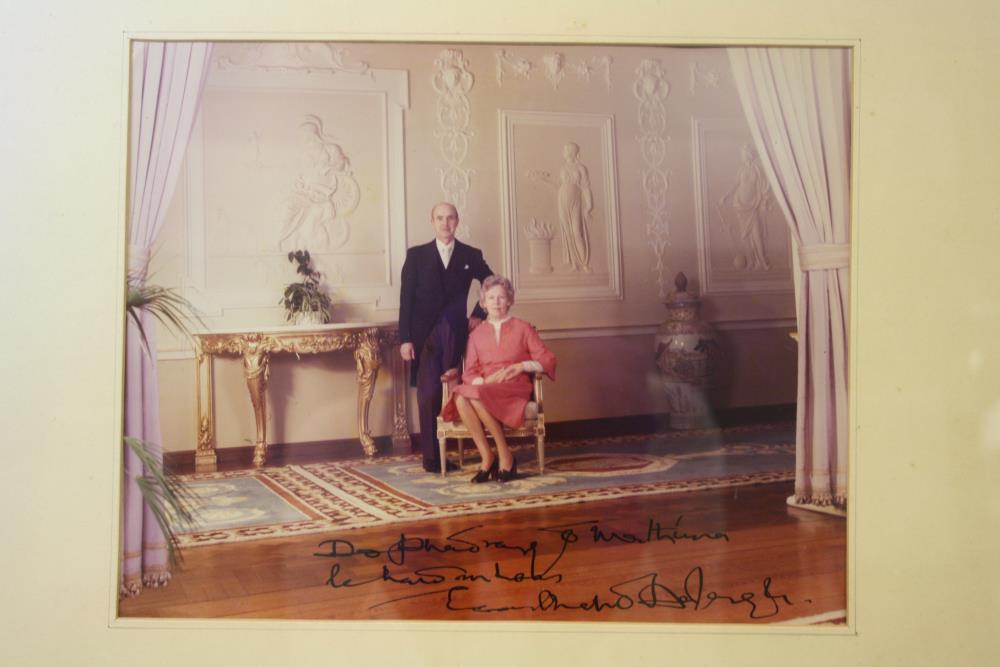 Photographs. Two photographs (in one gilt wooden frame): (a) President Cearbhall Ó Dálaigh and his wife Máirin. (b) President Ó Dálaigh in his study. Taken in Áras an Uachtarán by Donnchadha Ó Mathúna, younger brother of donor. Used with donor permission by Risteárd Ó Glaisne in his biography on Ó Dálaigh.;