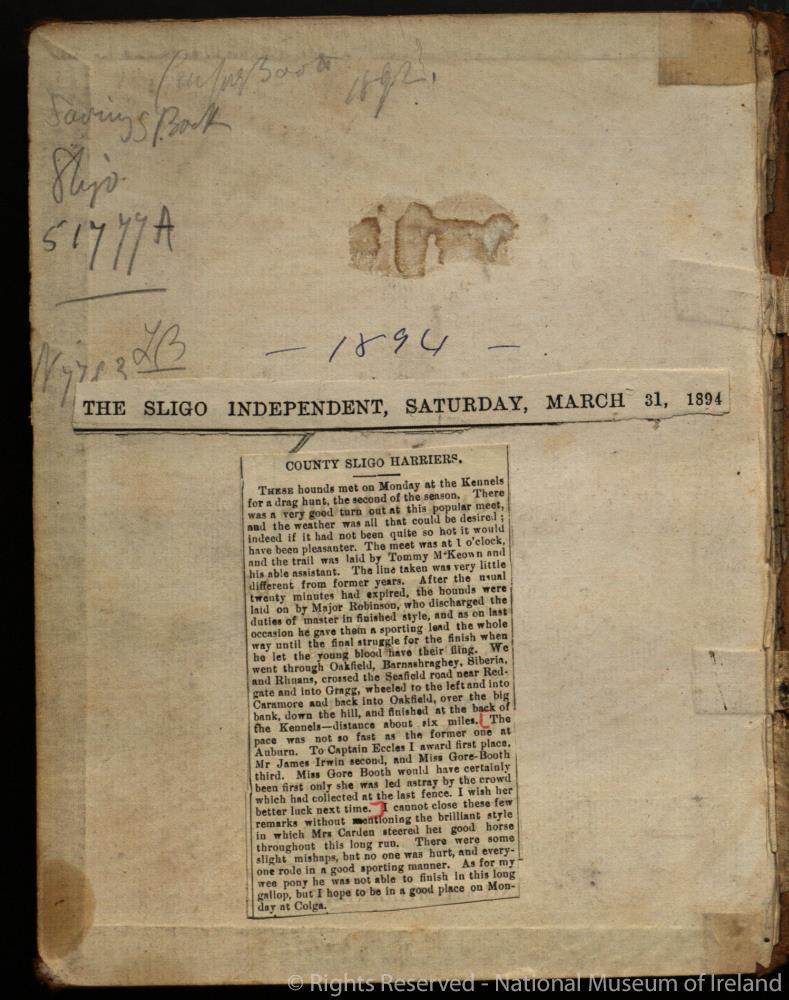 Diary of Countess Markievicz. A quarto (c. 7 inches by 9 inches) book, leather bound in cloth with leather back, containing diary, mostly in pencil, for 1892, and some earlier pieces loose.;