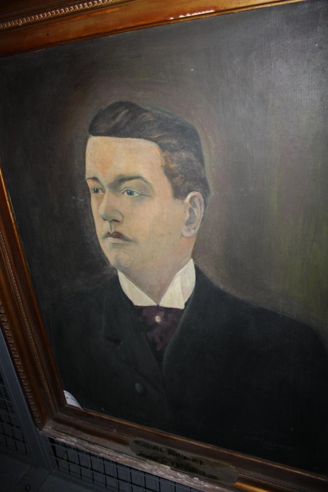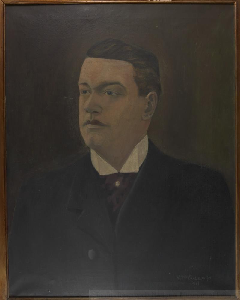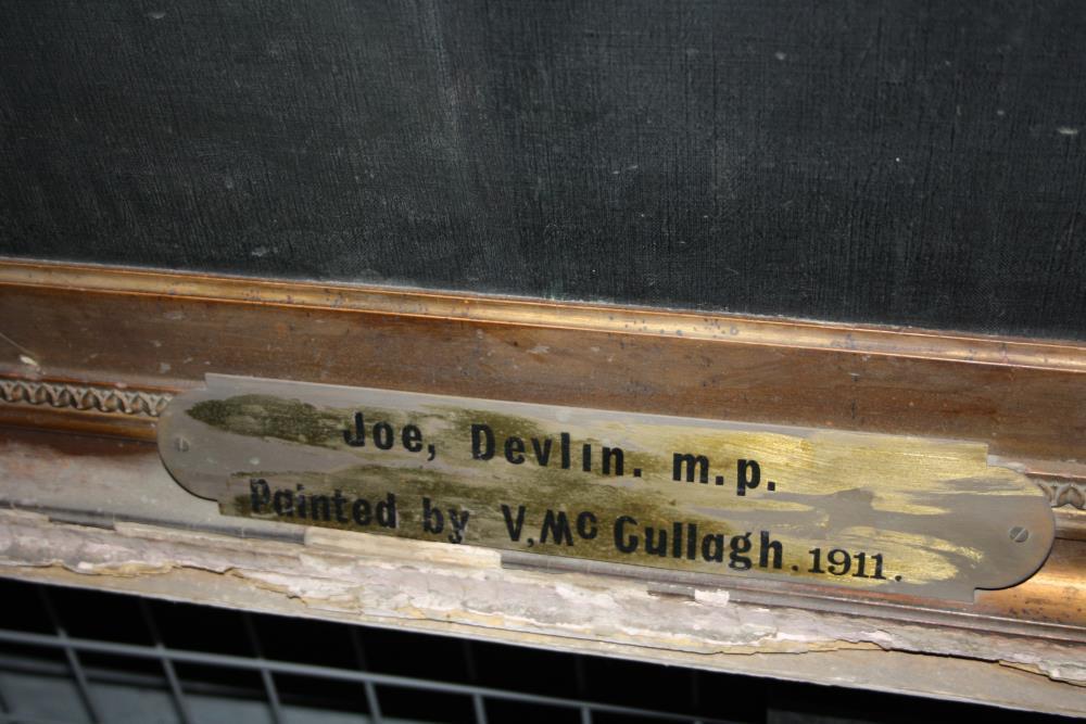 Joe Devlin by V. McCullagh, 1911. Framed oil-painting portrait showing Devlin head and shoulders. Canvas. 37.5 inches x 45.5 inches overall.;