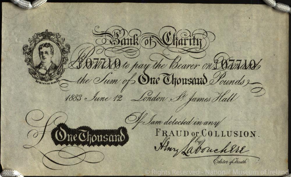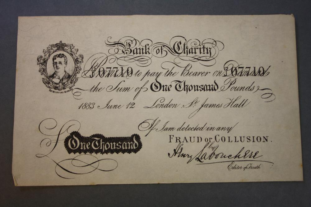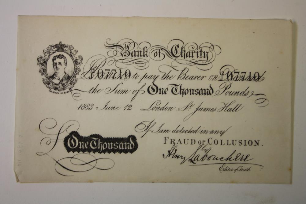 Henry Labouchere Propaganda Sheet. dated 12 June 1883 depicting W. Irving Bishop undertaking to pay £1000 'If I am detected in any fraud or collusion by Henry Labouchere Editor of Truth'.;