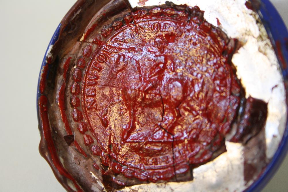 Wax impression of Orange Lodge seal. Depicting a mounted figure riding to left with a sword pointing forward in his right hand and the number 1530 behing him. Around above, 'Newton Forbes Body'. In exergue 'William III'. All within a husk border.;