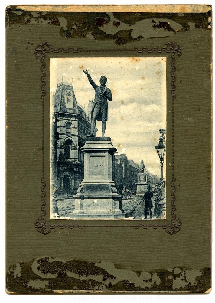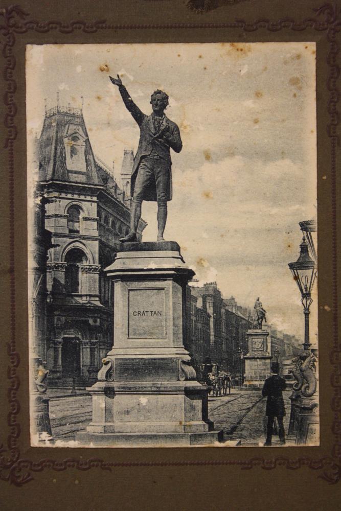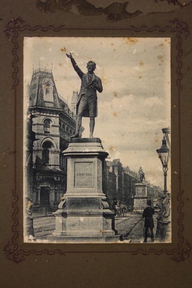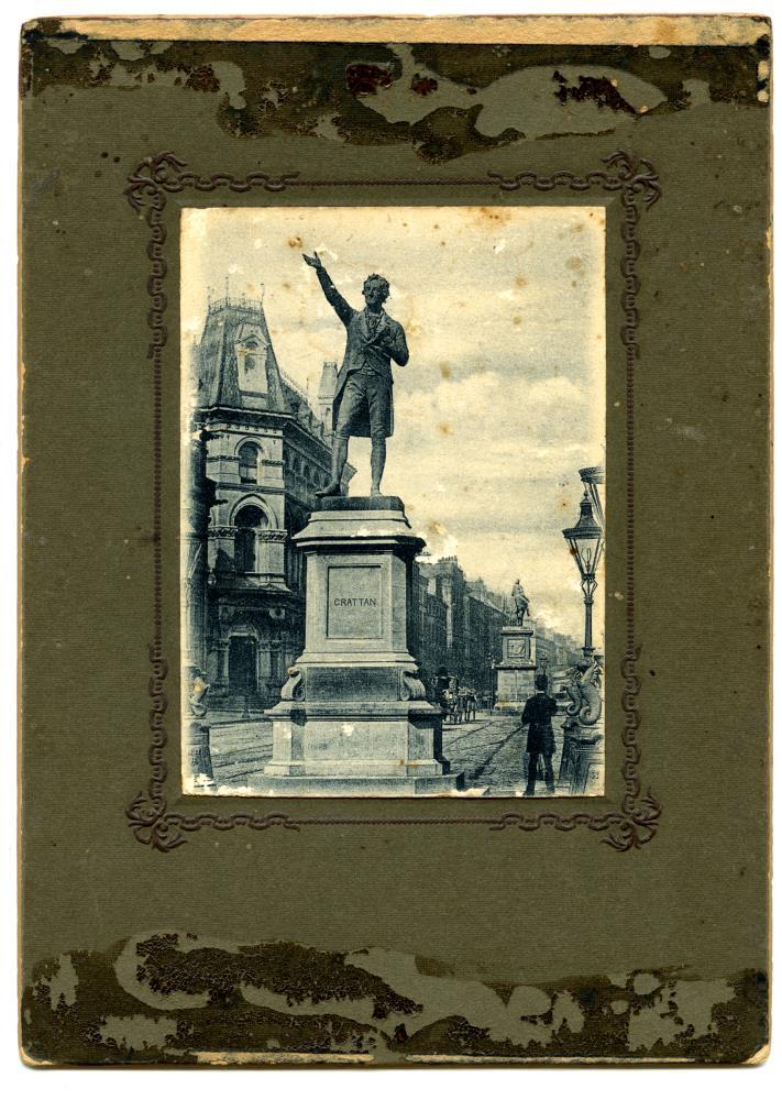 Henry Grattan. Postcard size photograph - mount - of statue of in College Green Dublin. Taken c.1905.;