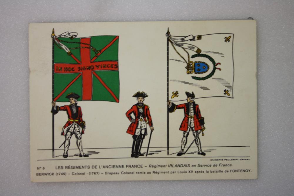 Wild Geese Flags. Postcard depicting flags of the Berwick Regiment in 1745 and 1767.;