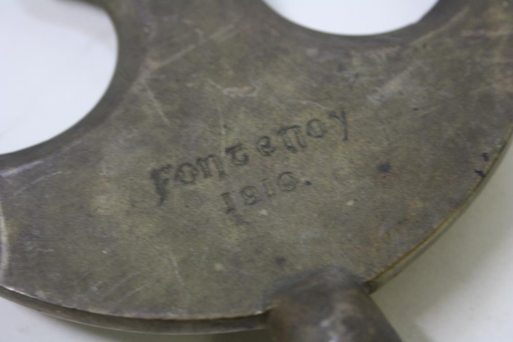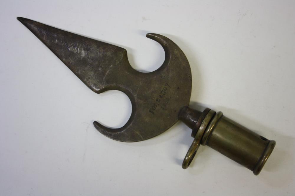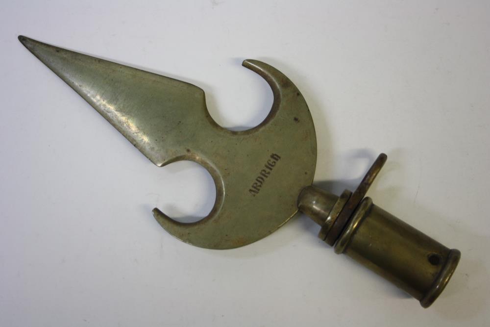Fontenoy Flag-Staff Finial. Bronze pike shaped head bearing 'Ardrigh' incised on one side and 'Fontenoy 1910' on the other. This belonged to F.J. Bigger and may relate to a trip to the scene of the battle.;