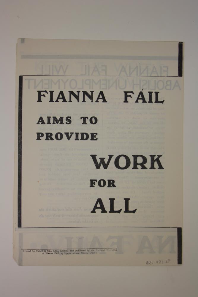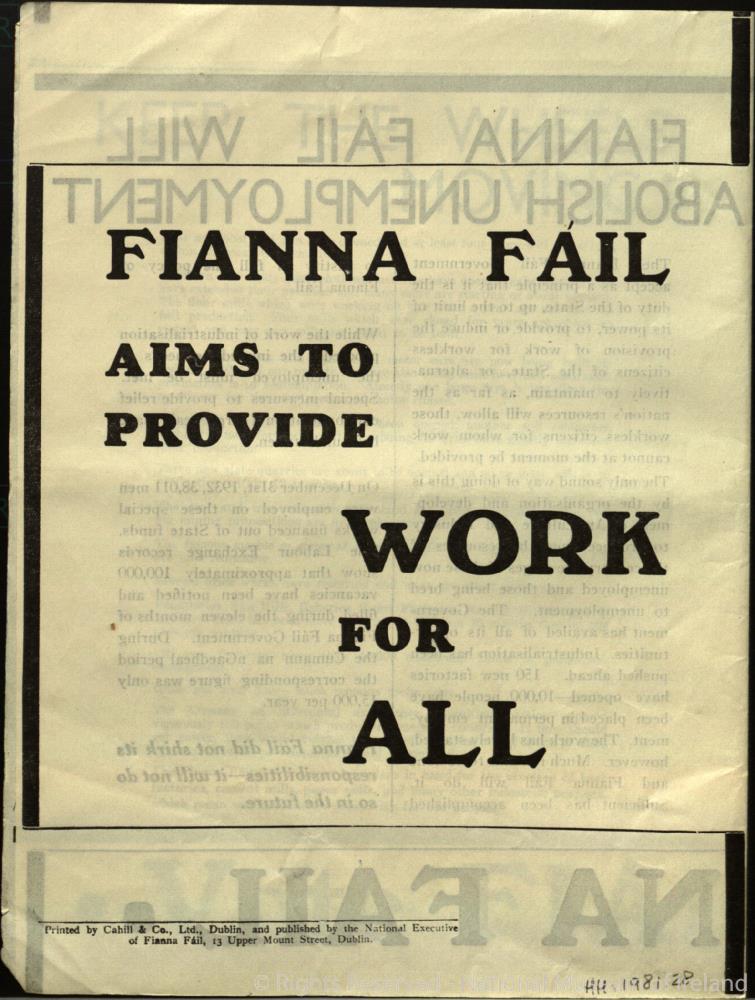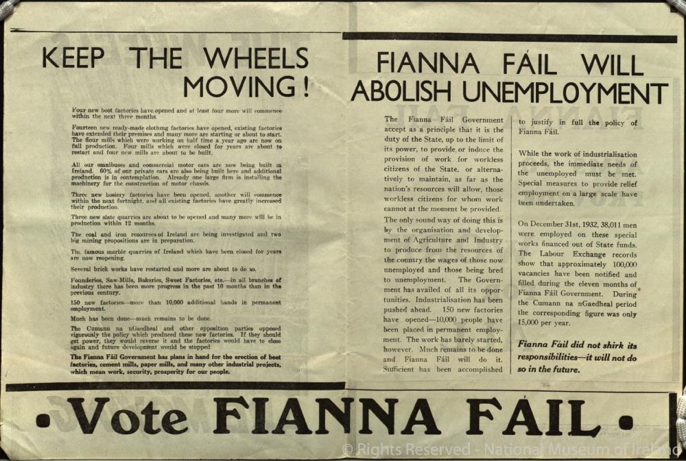 'The Wheels are Moving'. Fianna Fáil propaganda brochure or leaflet, early thirties.;