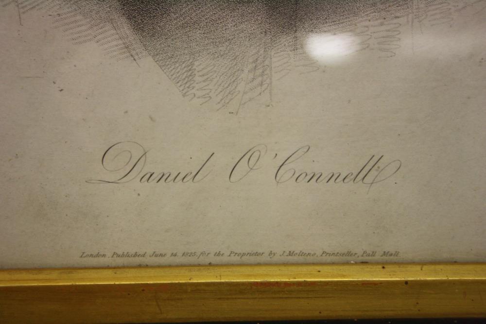 An engraving of Daniel O’Connell, framed and glazed. Engraved by J. Comerford. Published 14th June 1825 for the Proprietor J. Molteno, Printseller, Pall Mall. Printed in London by Laheel.;