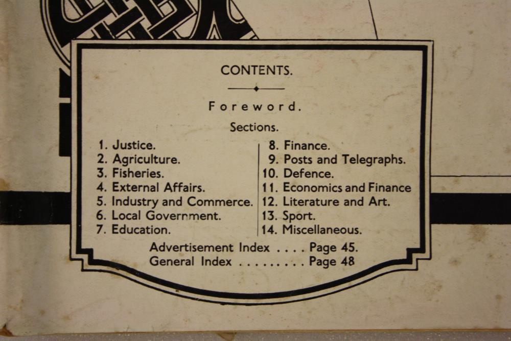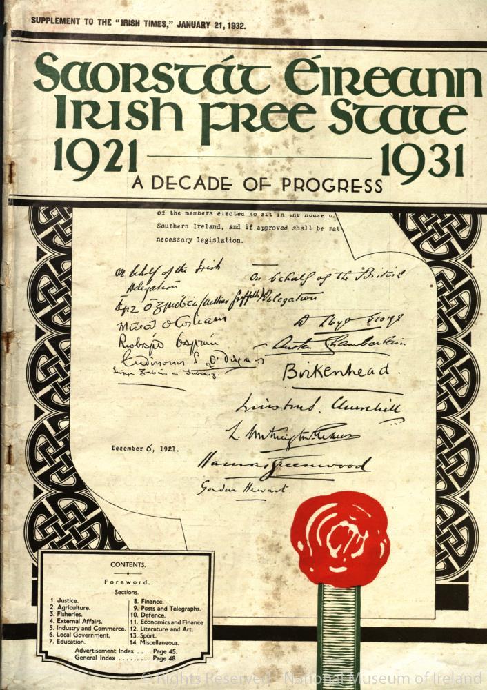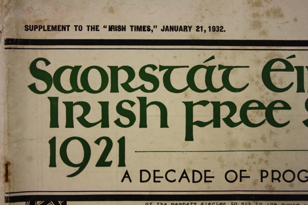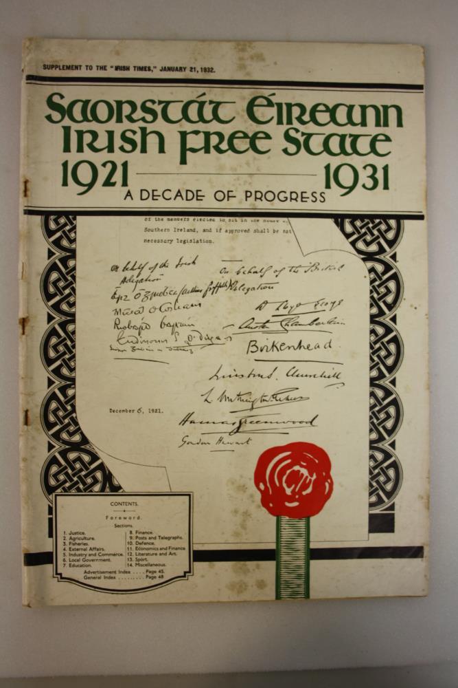 Supplement to The Irish Times newspaper, January 21st, 1931. ‘Saorstát Éireann, Irish Free State 1921 to 1931. A Decade of Progress. In magazine format, c. 48pp. With a listing of Government departments.;
