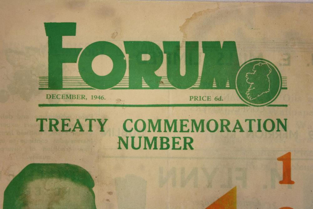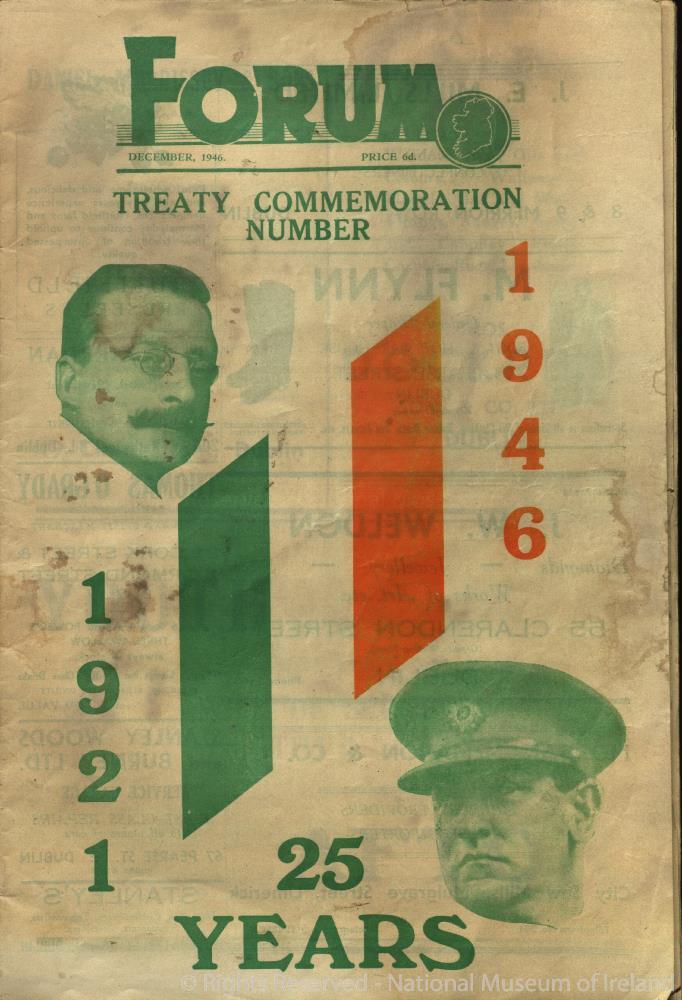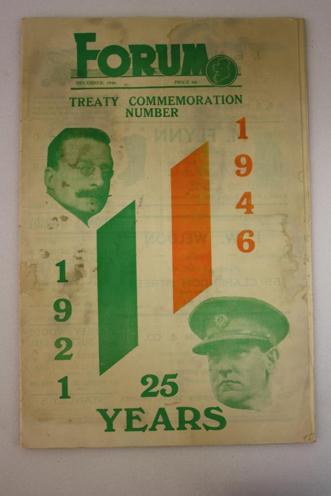 Copy of ‘Forum’, December 1946. Treaty Commemorative number, 25 years. With the images of Arthur Griffith and Michael Collins on the cover, with the Irish Tricolour.;