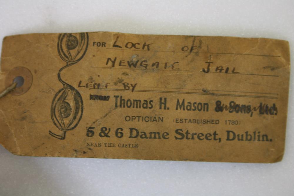 Lock from a door in Newgate Gaol, the 'Debtor's Prison', Cornmarket, Dublin. Dating from between its establishment in 1783 and its closure in 1863.;