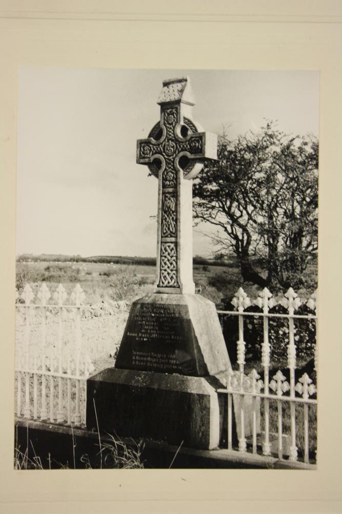 Photograph, black and white, of the headstone memorial to the Barrett Family.;