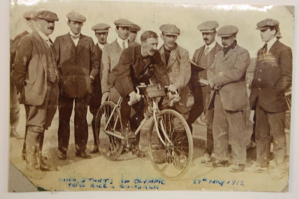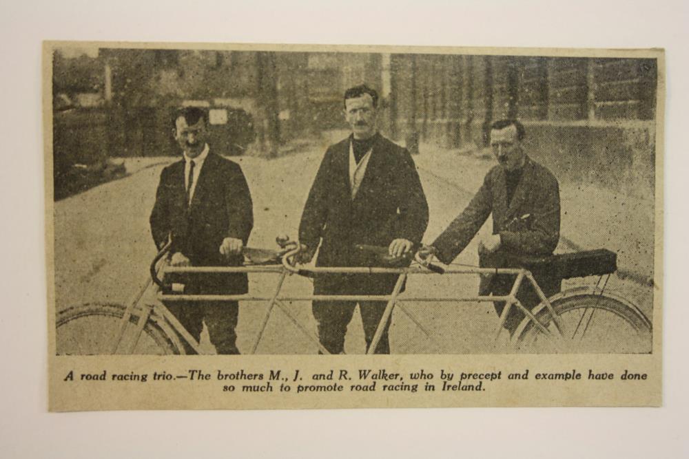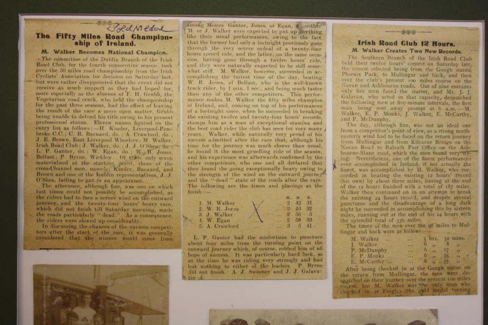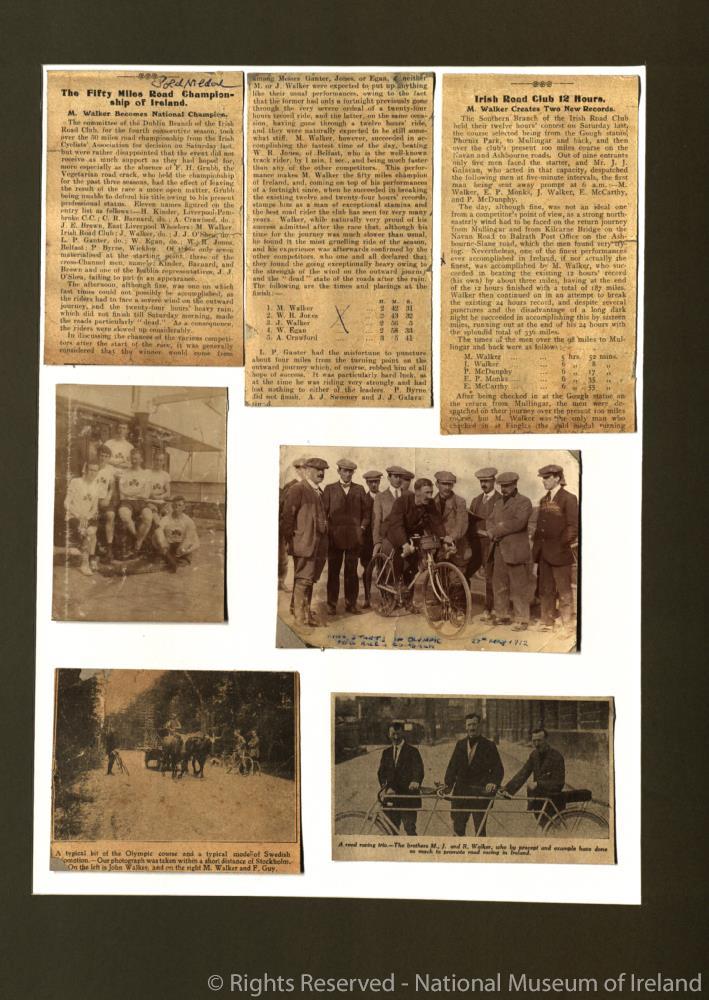 Photographs, two, plus newspaper cuttings relating to Michael Walker, road cyclist, who participated in the 1912 Olympics in Great Britain.;