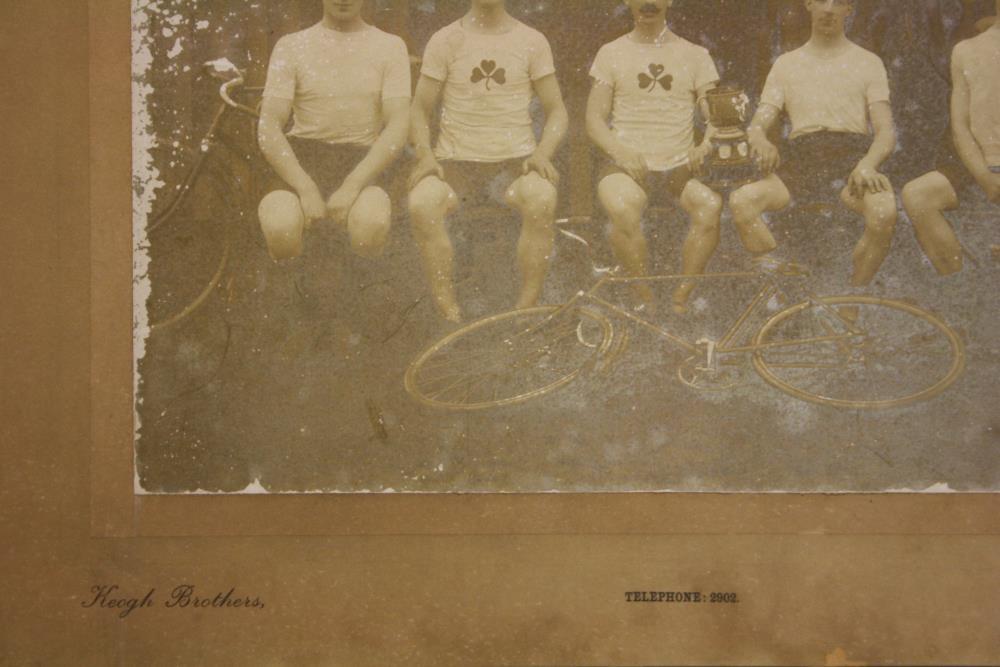 Photograph, group, black and white, by Keogh Brothers. Of the Dublin Cycling Team, winners of the 50 Mile Inter-City Contest 1913, Dublin v. Belfast.;