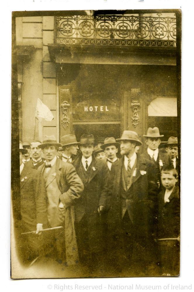 Postcard photograph; Longford Election, 1917. Information given states that George Lyons of the Stationary(?) Department appears in photograph.;