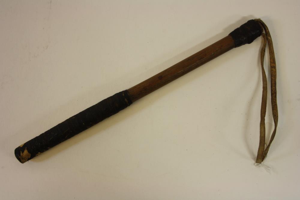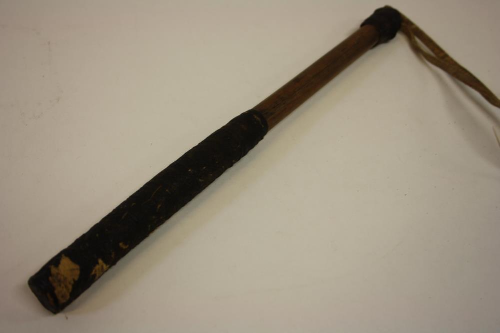 Truncheon or baton, with leather wrist strap, and banding around end. Possibly connected to the Blueshirts (see 1996.15).;