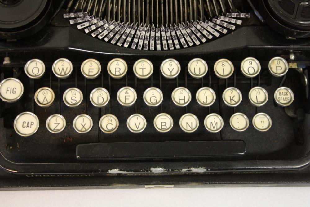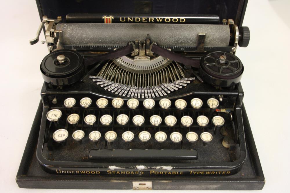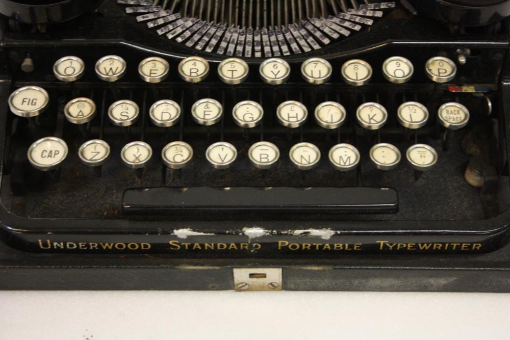 Typewriter said to have been used by Michael Collins. Underwood Standard Portable typewriter. Typewriter in black carry case.;