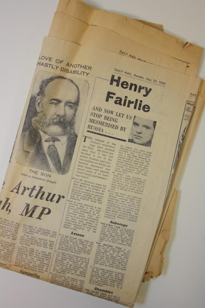 Copy of 'The Daily Mail', Monday May 23rd 1960, presumably collected for article on Arthur Kavanagh M.P., 1831 - 1889.;