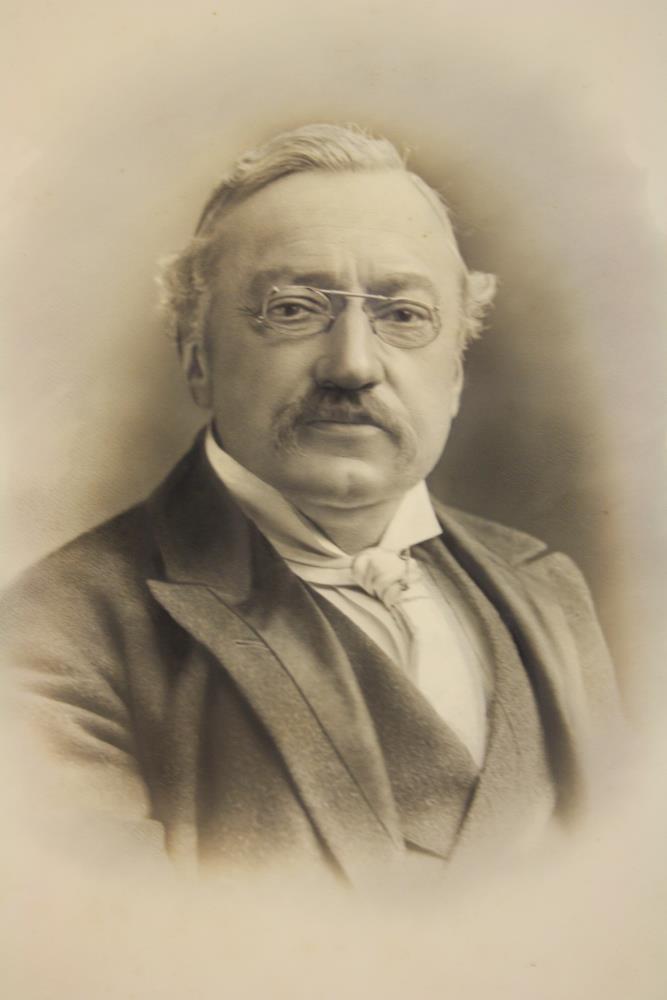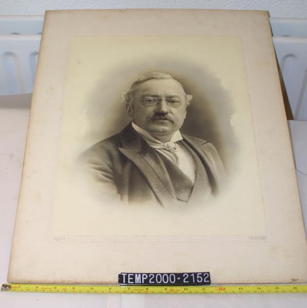 Studio portrait photograph of Sir Howard Grubb, by Lafayette. Mounted on white card. Under the photo, in print, it says: "Lafayette LTD" and "London, Dublin, Glasgow, Manchester and Belfast". On the back, handwritten in ink it says "Sir Howard Grubb". and "S3107 csi Lot 57".;
