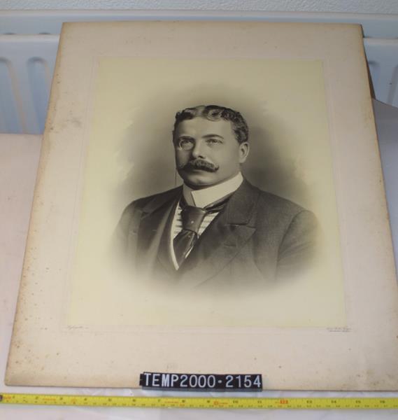 Studio portrait photograph of Sir Alfred Moloney, by Lafayette. Mounted on white card. Under the photo, in print, it says: "Lafayette LTD" and "London, Dublin, Glasgow, Manchester and Belfast". On the back, handwritten in ink it says "Sir Alfred Moloney". and "S3107 csi Lot 57".;