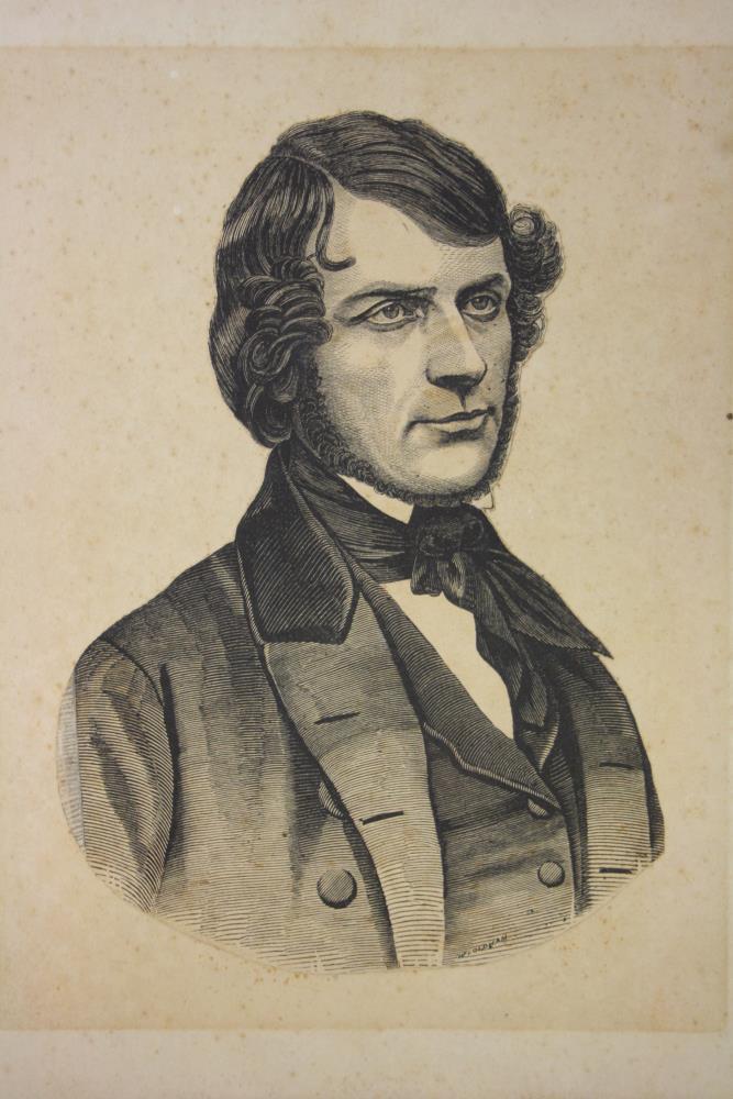 Drawing of a male, mounted on card, of John Mitchel by W. Oldham.;