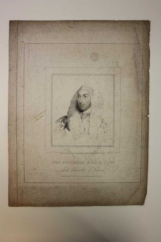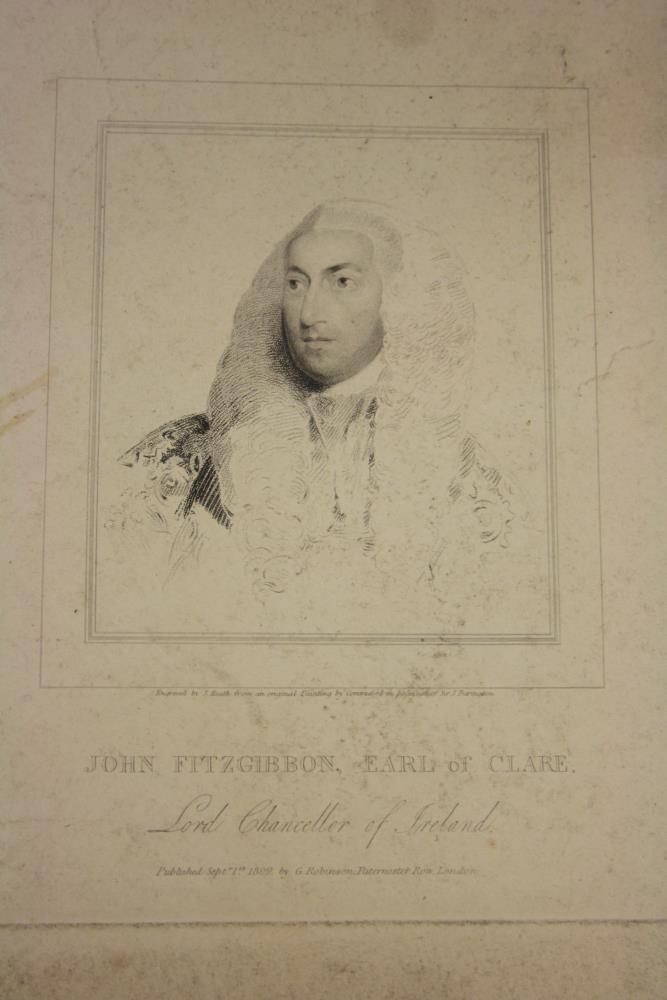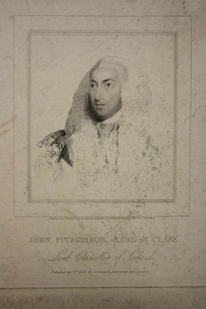 A print of an engraving of the Earl of Clare. Engraved by J. Heath from an original painting by Commerford in possession of Sir J. Barington John Fitzgibbon, Earl of Clare. Lord Chancellor of Ireland. Published Sept. 1st 1809 by G. Robinson of Paternoster Row. London.;