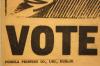 Fianna Fáil Election poster. 'Remove the Last Obstacles - then full steam ahead / Vote Fianna Fail'. By Fodhla Printing Co., Dublin. 1932 General Election.