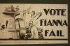 Fianna Fáil election poster, 1930s. Probably the 1932 General Election. 'On the Rocks / Change the Pilot / Vote Fianna Fail'. By Fodhla Printing Co., Ltd., Dublin.