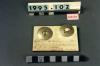 One of a pair of silver buttons (HH:1995.102.1& .2); from King George III to Indian Chief of the Six Nations. From Ross McCord, 2.6 Montreal. Circular, with hole in centre and clip attached to reverse.